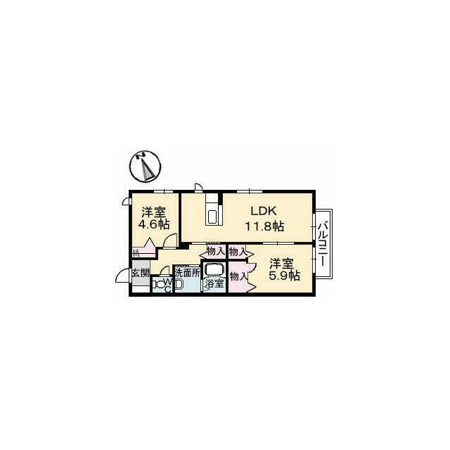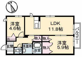 2LDK(LDK11.8帖 洋室5.9帖 洋室4.6帖) |