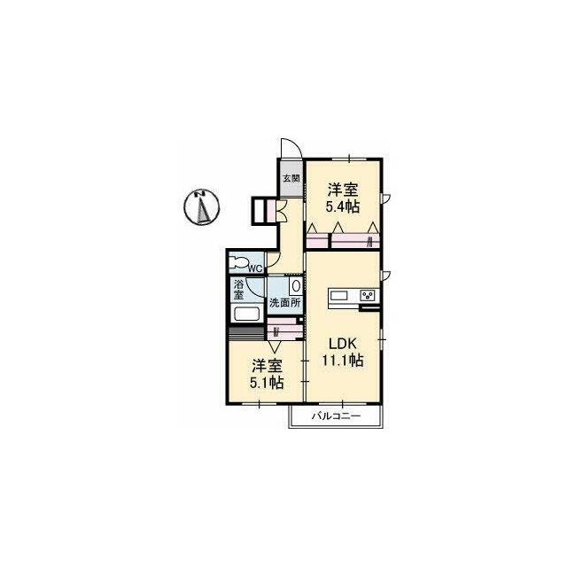 2LDK(LDK11.1帖 洋室5.4帖 洋室5.1帖) |
